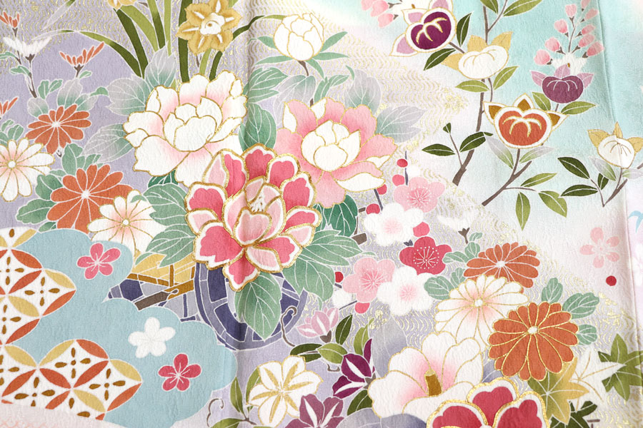 遠山四季花文の振袖 着物